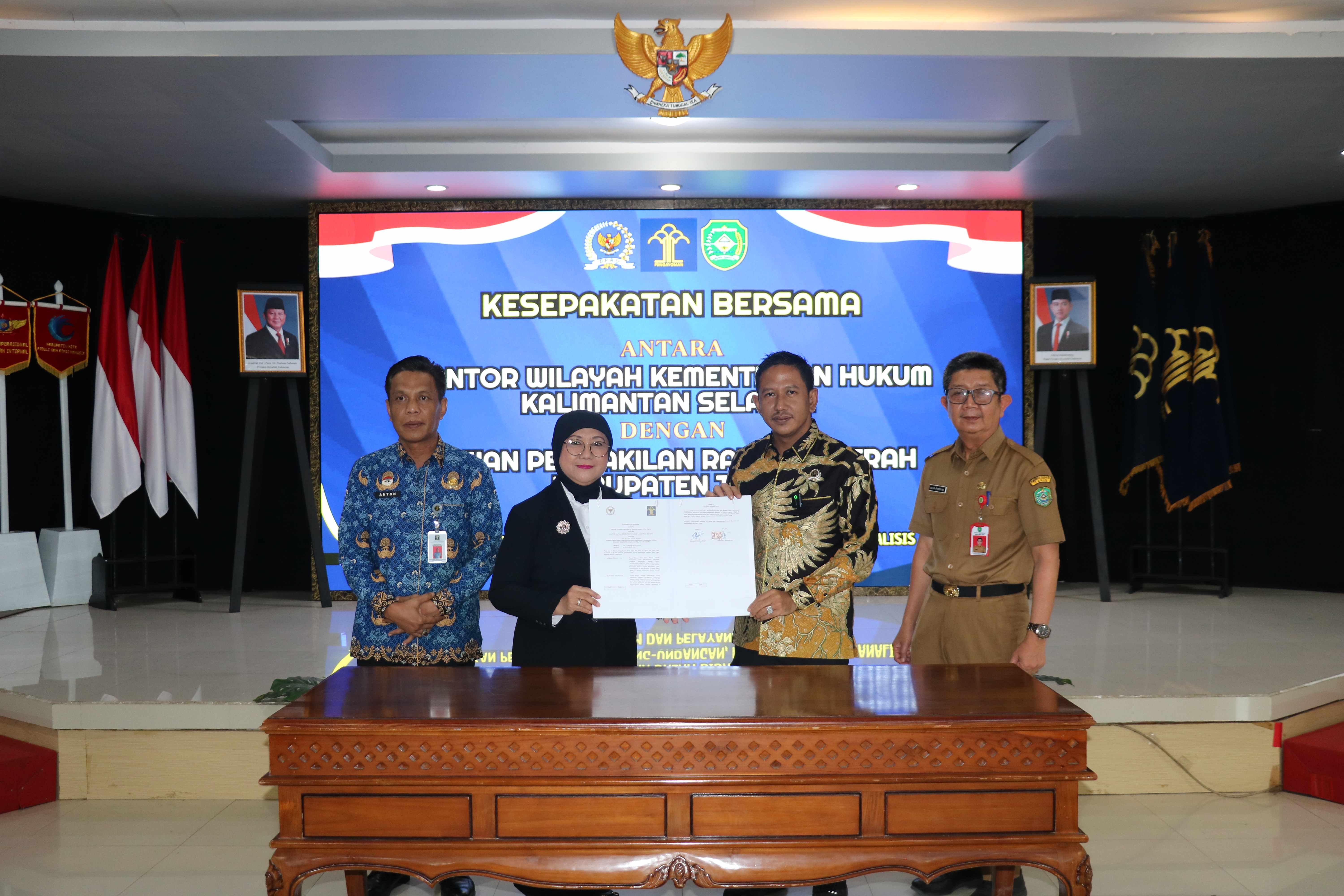 KESEPAKATAN BERSAMA ANTARA DPRD KABUPATEN TAPIN DENGAN KANTOR WILAYAH KEMETERIAN HUKUM KALIMANTAN SELATAN TENTANG KERJA SAMA DALAM BIDANG PEMERINTAH PERATURAN PERUNDANG-UNDANGAN, PEMBINAAN HUKUM, ANALISIS KEBIJAKAN HUKUM, DAN PELAYANAN HUKUM